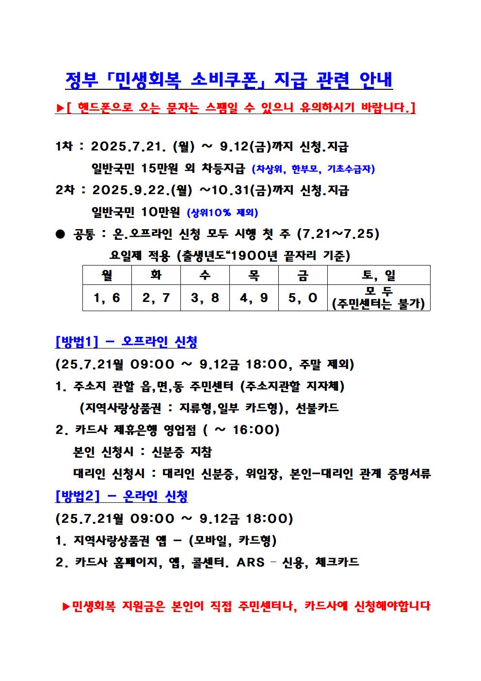 정부(민생회복, 소비쿠폰) 지급관련안내