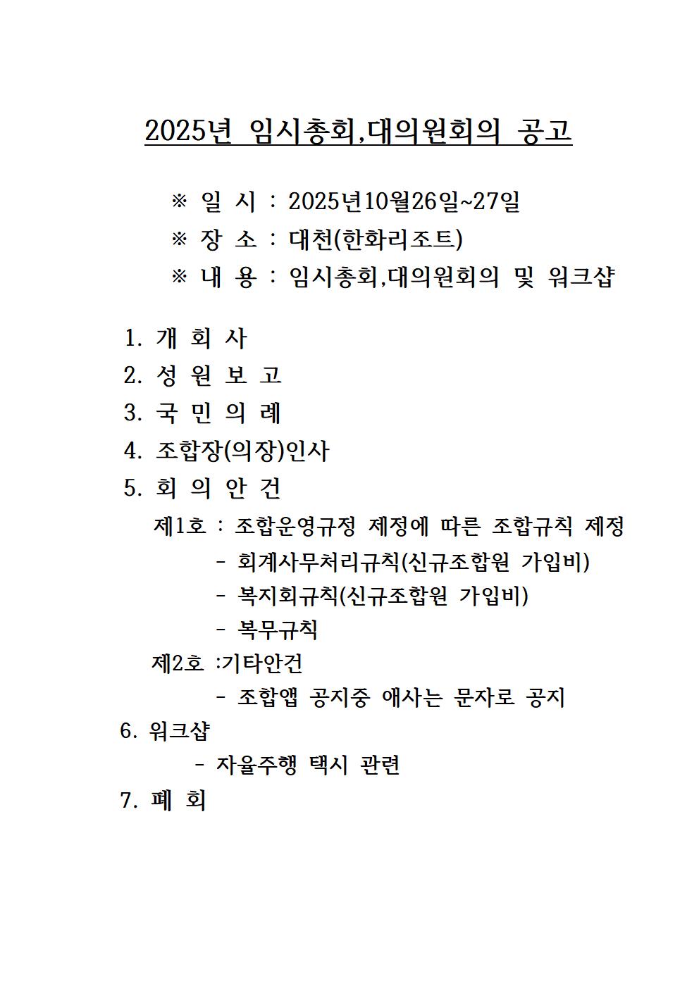 2025년 임시총회, 대의원회의 및 워크샵