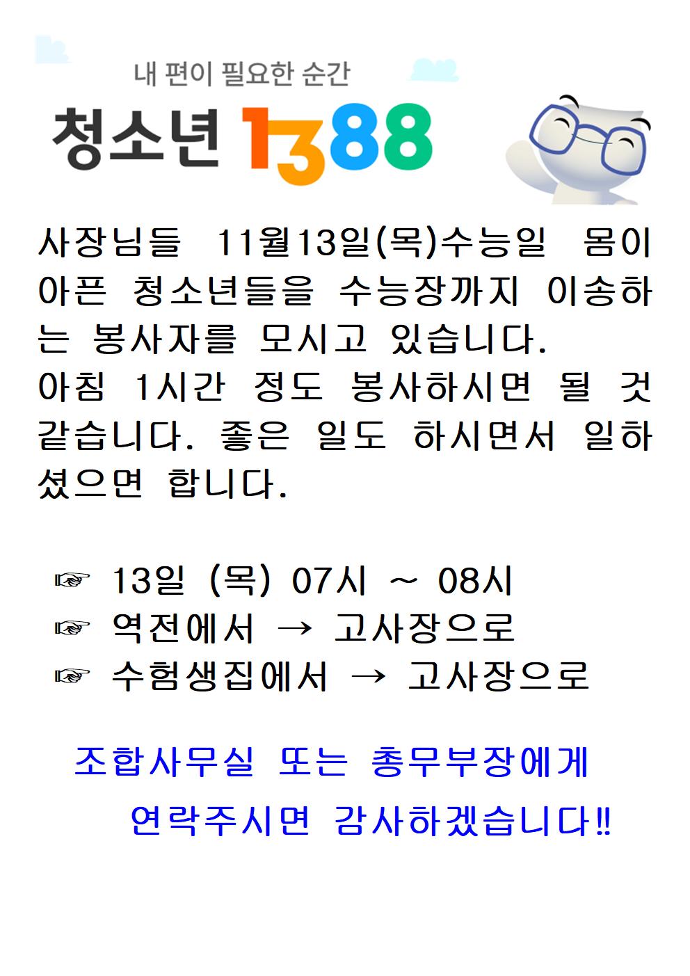 수능일 봉사자를 모십니다