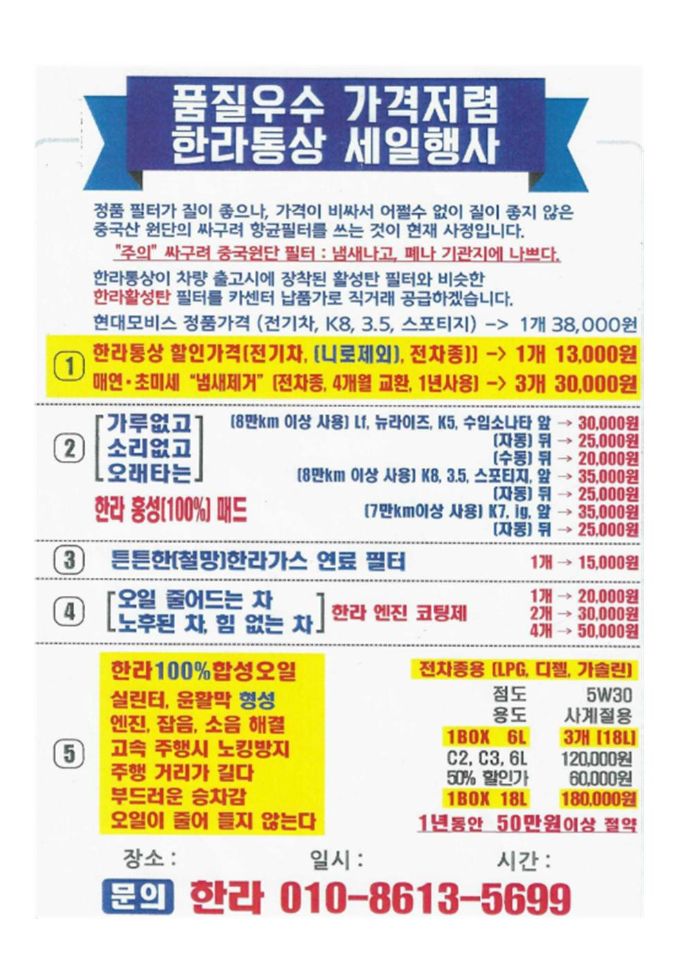 ☞ 일제점검시 구매하신 필터가 있다면 5,000환급 해 드림