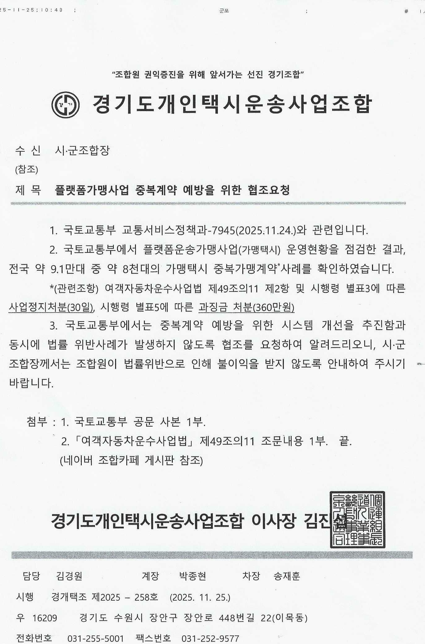 "가맹"만 이중 계약 해서는 안됨을 다시 한번 공지합니다.