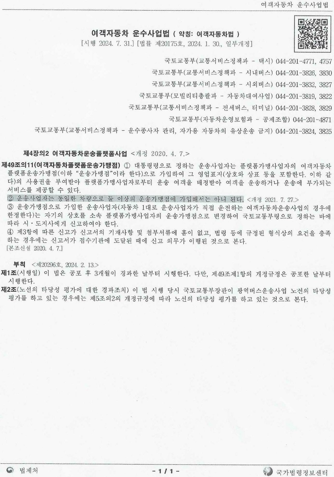 여객자동차운송플랫폼사업법제4장의2 제48조의11(여객자동차플랫폼운송가맹점)