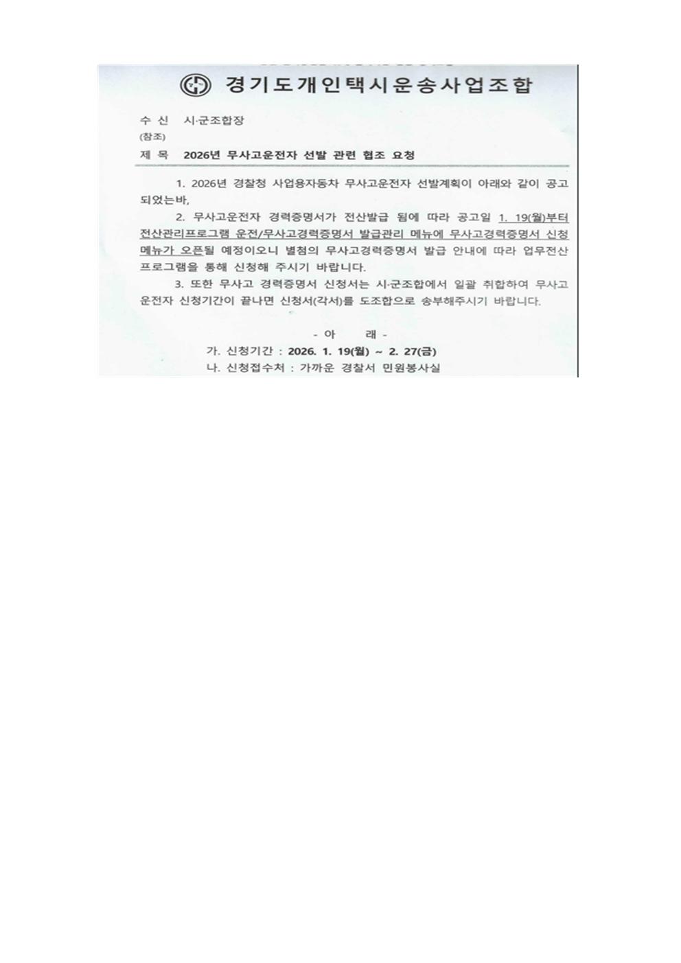 ●2026년무사고경력증명서 조합발급 (1월19일부터 가능)